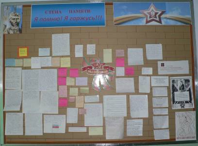 1 апреля 2010 года, в рамках всероссийского давижения "Я помню! Я горжусь!", в школе стартовала акция, посвященная 65 годовщине Великой Победы, "СТЕНА ПАМЯТИ - напиши имя героя-победителя". Наши учителя и учащиеся прикрепляли к "Стене памяти" листочки с именами своих родственников - участников Великой Отечественной войны, труженников тыла, детей войны. Материалы этой акции публикуются на страницах нашего сайта. ЭТО ПЕРВЫЙ БЕССМЕРТНЫЙ ПОЛК села БРУСНЯТСКОЕ!!!